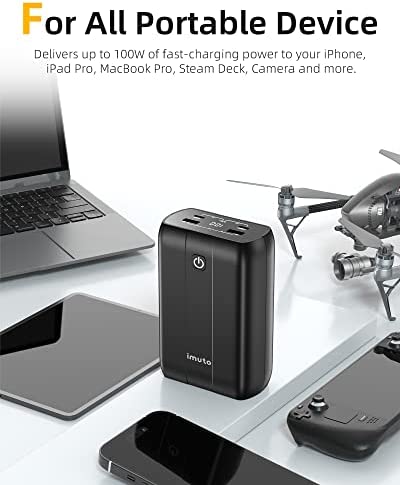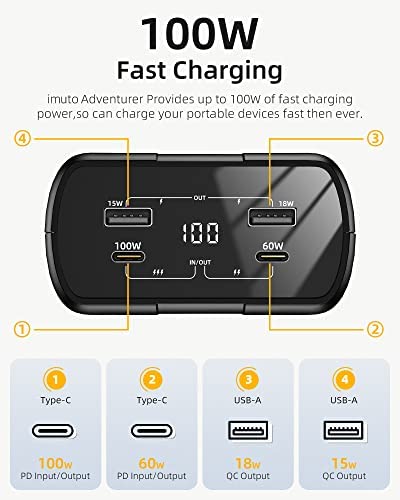 Designed to be highly portable, the imuto 100W Power Bank is a sleek and compact device that easily fits into your backpack, purse, or briefcase. Its sturdy construction and robust design make it a durable and reliable companion for any adventure or business trip.
