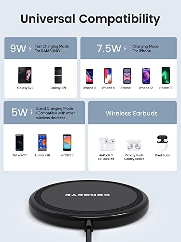 This 2-Pack Wireless Charging Pad is compatible with a range of devices including iPhone 13/13 Pro/13 Mini/13 ProMax/12/SE/11 as well as Samsung Galaxy S21/S20/Note 10/Edge Note 20Ultra/S10 and AirPods Pro. Say goodbye to the frustrating moments of tangled cords and slow charging speeds – it is time for you to step into the future of hassle-free charging.